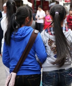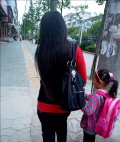 孝感街头的超长发妹
