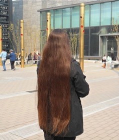 孝感街头拍到超长发女