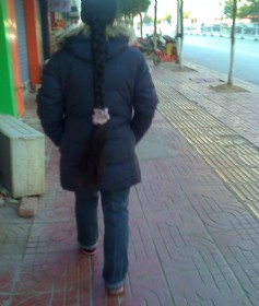 孝感街头的超长发妹
