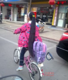 孝感街头的超长发妹