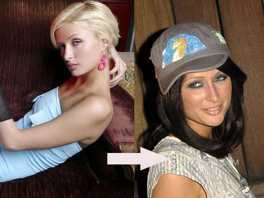 名人示范:帕丽斯-希尔顿,用假发掩盖自己的金发,体现完全不一样的性感风格。