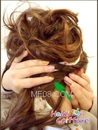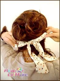 ④ 假发向上折的那一条发线,要适当地把头发拉松一点来掩盖。