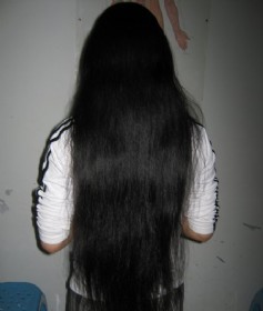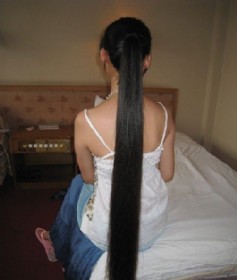 半个月前去学校图书馆拿复习资料,碰到这女孩!盘着高高的发髻!外语系的大二学生~ 跟上前跟她打招呼,让她把头发放下来看看,哇塞!到膝盖啦.... 学校里好难碰到的!而且我们还是本家哈哈~ 女孩还告诉我,她上初二的表妹头发也很长,而且相当丰厚!……(2009-06-14)