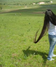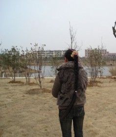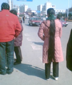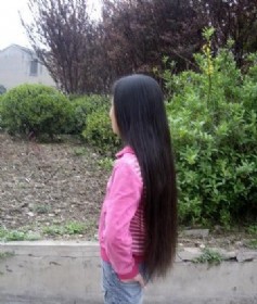 今天下午在站台等公交车时,看见这么位长发女,真的是好兴奋啊,因为我在扬州已经好长时间没有看见过这么长头发的女性了,于是我跟随她一起上了公交车,并在她家门口喊住了她,经过长时间的交谈后,她终于决定将头发卖给我。我大概量了一下,此女发长约一点四……(2008-02-27)