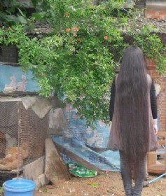 彭大姐绸缎般长发待剪