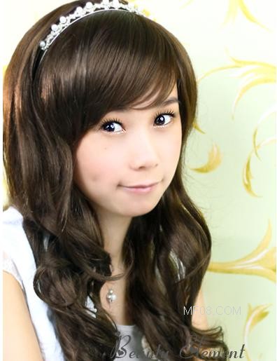 甜美可爱的斜刘海蓬松长卷假发(2)