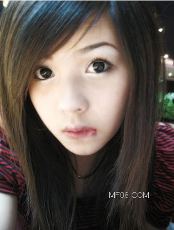 非主流美女演绎斜刘海直长假发(2)
