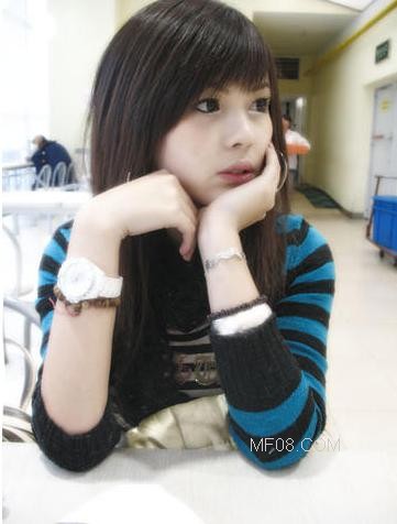 非主流美女演绎斜刘海直长假发(3)