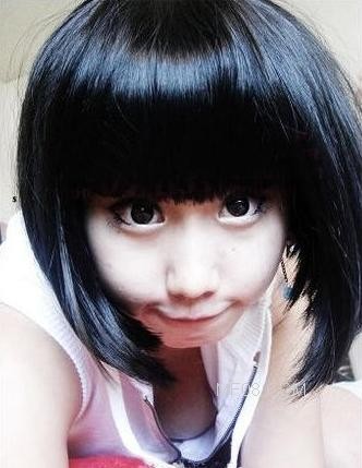 非主流美女演绎斜刘海直长假发