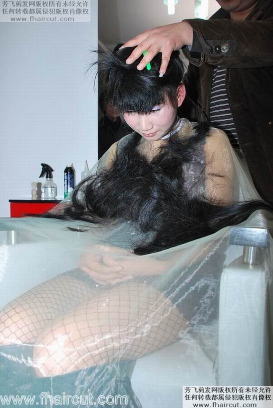 姑娘及腿长发洗发,展示
