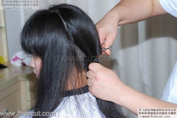 视频:帮长发女剪头发