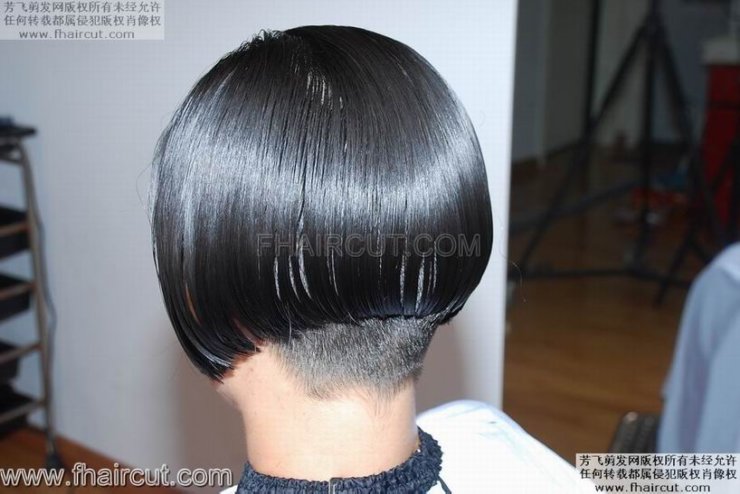 超级黑亮长发剃BOB