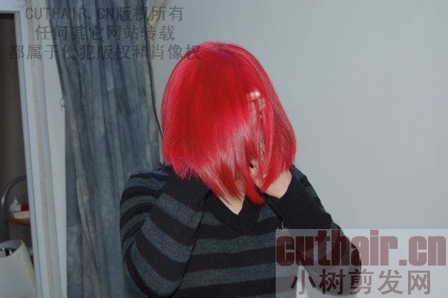 小妹剪红色的波波头