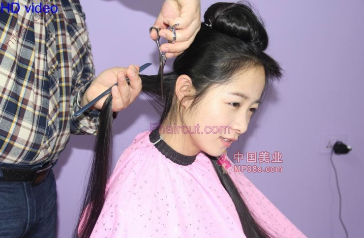 给长发妹子剪发