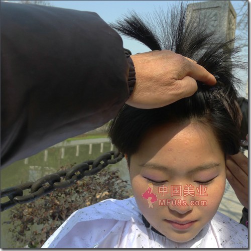 长发美女剪清爽短发