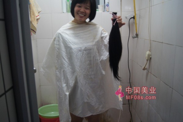 冲凉房内剪下华为美女56厘米光滑头发-深圳mm353