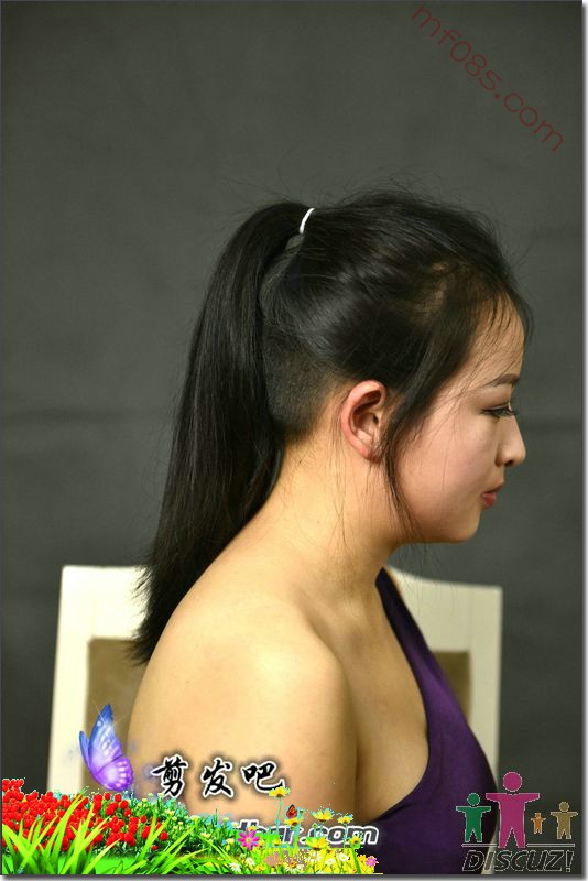 前卫女孩先剪朋克再剃光头-剪发吧168#