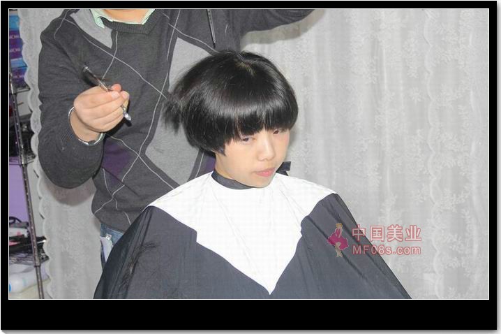 两长发少女剪BOB头