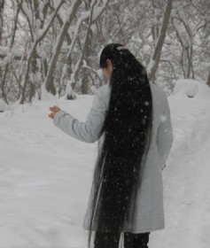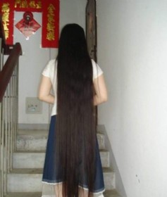 长发留了10多年了,本来只是想留到腰的,谁知越留越舍不得剪,也就越留越长,过了腰,过了膝盖,现在快拖地了.死党居然跟我开玩笑说再过点时间就能有一把拖把了,每天早上梳头前披着头发房间里来回一走,扫地都省了.偶就威胁她什么时候偶用头发缠死你,呵……(2008-02-20)