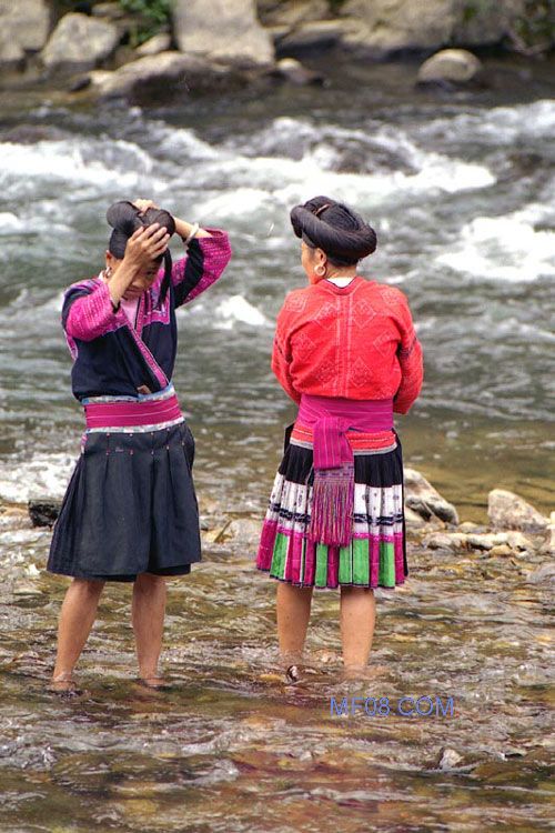 红瑶妇女有不剪头发的习惯,自少年起就留发。至青年时代,则将头发盘于头上,用绣花黑头巾包起,既保护那一头秀发,又是民族的一种特征性装饰。到出嫁生了小孩,发型有所变化,长发在额头上束一个髻,其余则盘在头上。额前的髻便是当**的标志。