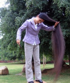 马大姐家住双辽市辽西街铁西委二组,39岁,身高1.60米。昨日,头戴白帽的她出现在本报接待室。“小的时候,妈妈没有时间给我们梳头,头发长了,就剃成短头。一直到16岁时,我才开始留头发,这一留就是20多年。这不,已经有3 米多长了。”马大姐挺……(2009-03-19)