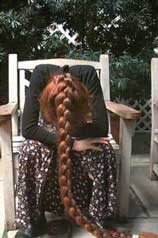 1、李姐——李姐原先和我们家住在一个楼上,她的弟弟和我的年龄相仿,是我少儿时代的好朋友,我们在同一所学校同一年级上学。李姐是我们院里有名的大辫子,她从上小学起就开始留长发,到了中学时已经养出两条长长的粗辫子。她的头发黑亮,粗壮,辫子长至臀部以下。她的一条辫子有擀面杖那么粗,顶普通人的两条辫子,是我亲眼见过的最粗的辫子。两条粗大的辫子从她的头上垂下来,给人一种沉甸甸的感觉,落到床上和地上,一定会听到闷闷的声响。记得是一个夏天,我到她家找她弟弟玩,一进门看到她正在那里梳头,她一边和我打着招呼,一边继续梳着。她的头发真的很浓密,披散开、蓬松开显得特别多,一下子把她整个人都罩在了里面,只看到两只手在梳理着长发,脸部以及身体的上半部被挡了个严严实实。我从来没有见过这么多的头发。她梳起头发来十分麻利,也十分用力。可能是头发多的缘故,她似乎不太在乎掉一些头发,甚至是有意识的要让浓密的、多得要命的头发掉下一些,以减轻头发的重量。不一会她就将头发梳通了,然后开始编辫子,这是我第一次看异性编辫子。我本以为这编辫子很麻烦,但是看了李姐编辫子才知道对于她而言十分简单,她好像连看都没看手中的长发,眼睛一直看着前方,就好像轻松熟练地操作一样工具,全凭手的感觉。一条辫子编好了,被优雅地甩到一边,然后开始编另一条,动作依然是那么轻松自如。没等到另一条辫子编完,她弟弟就把我叫走了。
