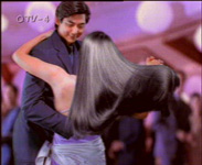 诗芬洗发用品广告——漂亮的姑娘和英俊的小伙子在舞厅翩翩起舞,不幸碰翻了男服务员手中的酒杯,红葡萄酒溅了姑娘的衣裙,怎么办?姑娘不慌不忙,解下用来盘理长发的丝巾,乌黑亮丽柔顺的长发垂落下来。姑娘将丝巾系在裙子上,伴随着舞姿轻轻摆动,长发在飞舞,姑娘更动人。
