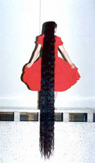 当看到戴月琴的长发照片时(就是左边这张),我不禁感叹:世上竟有如此美丽的长发!照片上的戴月琴身着红色衣裙,长而浓密的黑发从她所站的地方垂落,长发的长度(当时是2米8)接近她身高的两倍。令人不可思议的是,如此长的头发,其末端发量依然很多!与其相对照,尽管当时王丽娟的头发比戴月琴的长,但是王的长发随长度的增加越发显得稀疏,有一种令人怜惜却有无奈的感觉。戴月琴的长发不仅奇长,而且丰厚、粗壮、浓密、黑亮,透出一种朝气和旺盛的生命力,其呈现在眼前的那种整体的美感绝不是用长度所能表达的。我仔细端详这张照片,从不同角度欣赏这世间罕见的美丽的长发。我想象着这头长发从头顶缓缓垂落的情景,想象着其梳成一条大粗辫子的情景,想象着那条大辫子在背后摆动的情景,想象着她仔细洗发、梳发、编发、盘发的情景,想象着她披着这头长发走在红地毯上的情景,此时那几个可爱的孩童手里提着的不是那洁白的婚纱,一定是那乌黑的长发,这是一幅多么奇妙的场景啊。很遗憾我不会画画,不然的话我一定会将这幅场景画出来,留下来......当时看了长发照片后,惊奇、感叹之余,也留下了不小的遗憾,那就是照片只是从背面展示了长发,没有戴月琴正面的照片,或许是受版面的限制,只能上一张照片,或许是编辑想把大家的注意力集中到长发上而又意安排,或许是因为长发女的形象与长发不相称,从背后看给100分,转过身来只能60分......这仅仅是我当时的猜测。应该说从那以后,又有一位长发女进入了我的视野。
