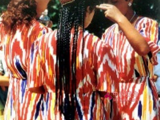 维吾尔族小姑娘的辫子数是根据头发的多少来定的,当然梳得越多越漂亮。为了能多梳辫子,她们对头发十分爱惜,经常梳洗,保持清洁。每梳完一次辫子,还要涂上一种自制的“发胶”,维吾尔语叫“依林穆”。“依林穆”是沙枣树胶,结晶体。使用时,用水溶化,用手涂抹在头发上,等干后,头发变得硬而明亮,梳好的小辫子,十几天不用梳也不乱。这种定型发胶既便宜,效果又好,同时它还能保护头发和刺激头发的生长。南疆的小姑娘出门或是走亲戚,都要在小辫子上抹上这种“发胶”,使小辫子变得光光亮亮、黑黑黝黝,看起来更加楚楚动人。