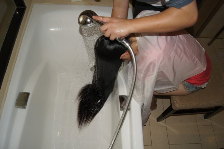 心急母亲拍长发女儿洗澡