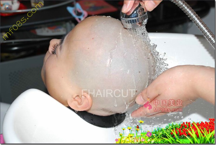 等到那哥哥再喊了一次,这丫头总算回过神来。轻巧地跳下理发椅子,踩着散落地上的一摊摊长发,来到了洗头的地方。抓了抓小脑袋,有点不好意思地笑了笑。