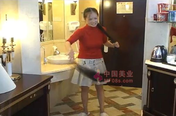 宾馆内剪下长发美女的美丽长发