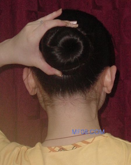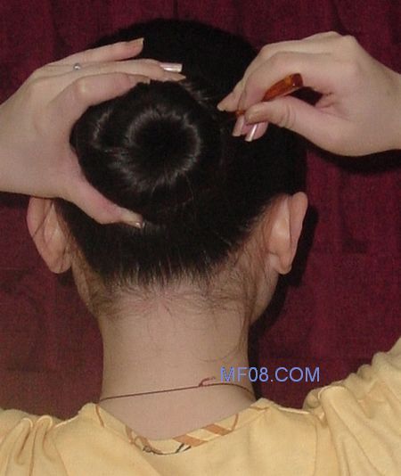 第五步:左手扶住发髻,起固定作用