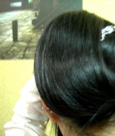 黑亮头发卷起来