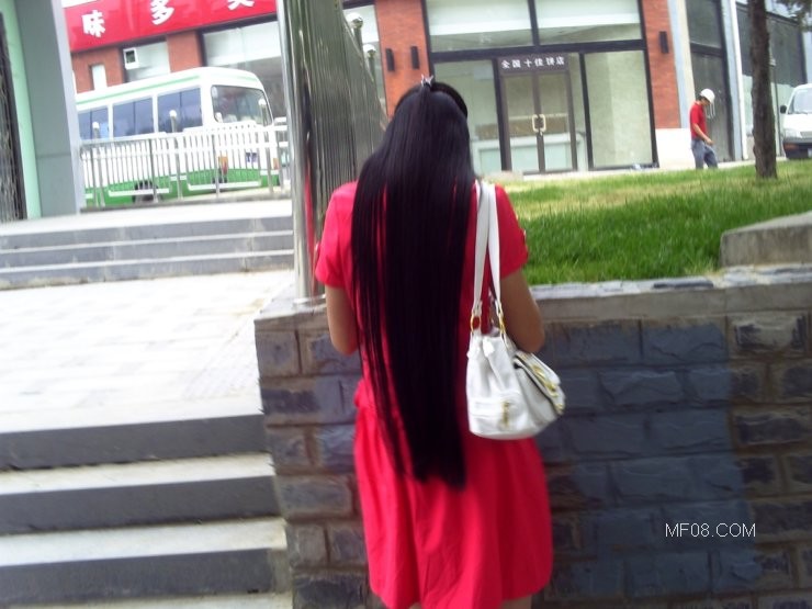 偶遇顺直黑亮长披发美女