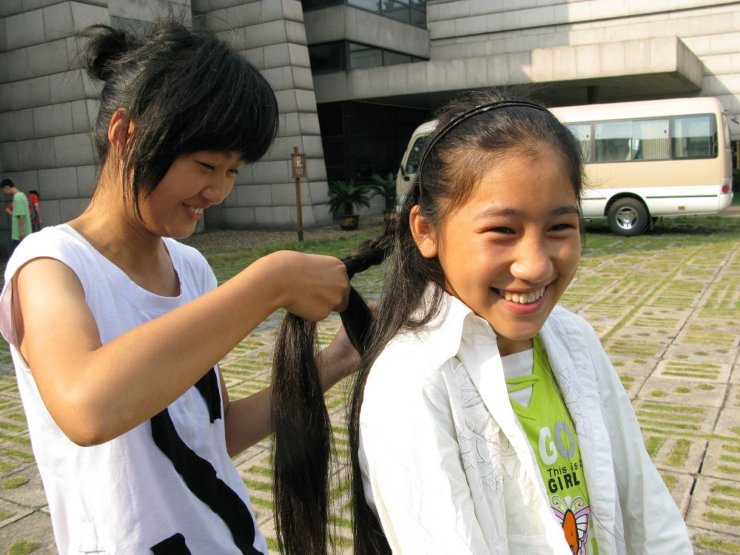 柔顺的长发女孩剃光头