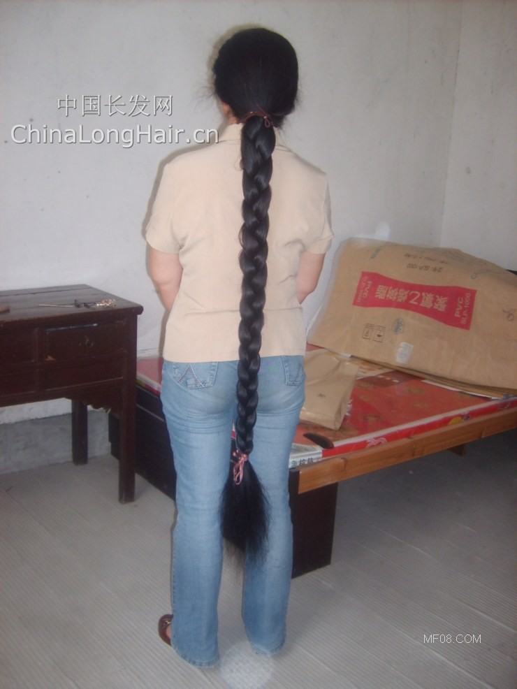 最近我终于有空,见到了她她的长辫还是特别的粗,长度前垂到地了.我用数码像机拍了几张照片,给各位欣赏.