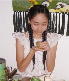 长发女朱敏世博园内展长发