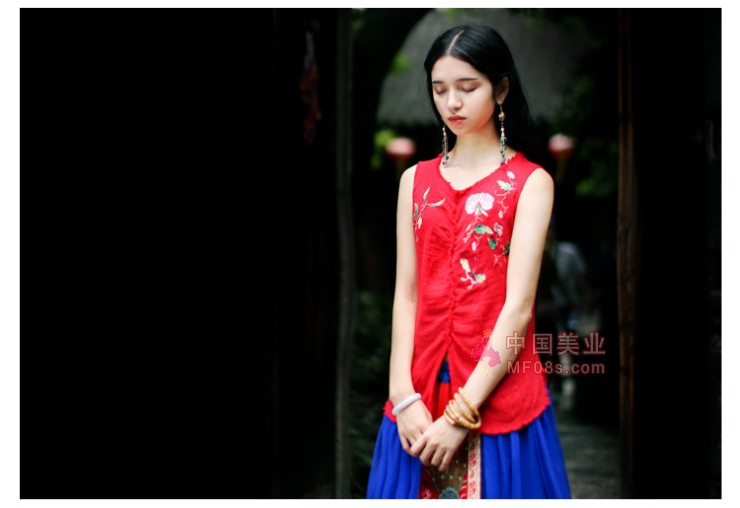 红衣配长发 挺美的