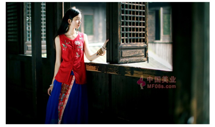 红衣配长发 挺美的