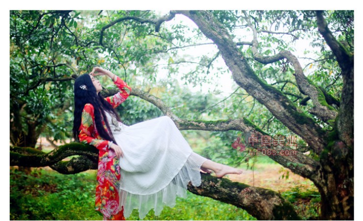 红衣配长发 挺美的