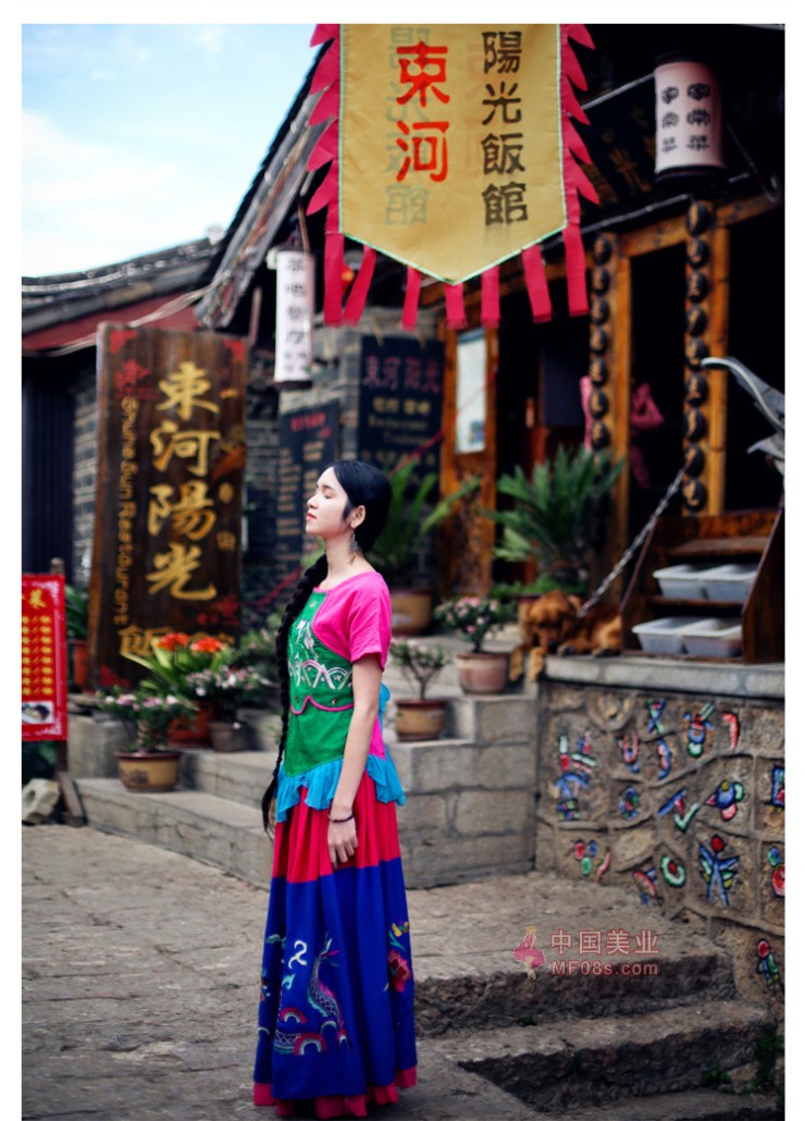 红衣配长发 挺美的