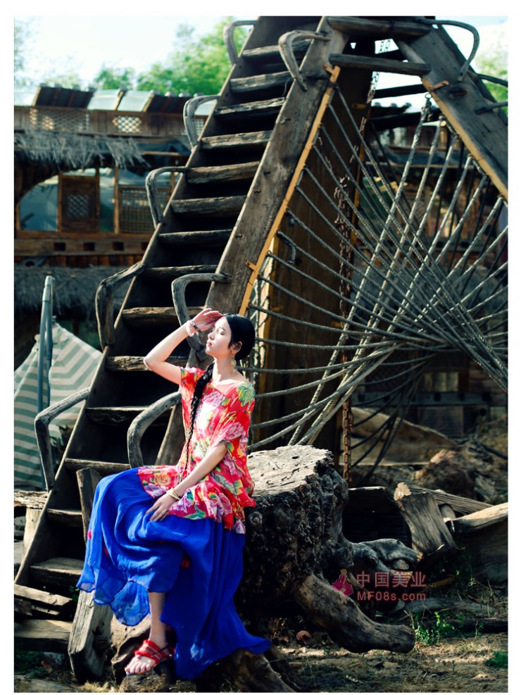 红衣配长发 挺美的